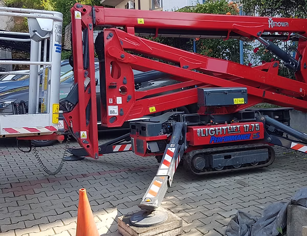Hinowa Lightlift 17.75 este o platformă de lucru pe șenile, compactă și versatilă, ideală pentru lucrări la înălțime în spații restrânse. Oferă o înălțime maximă de lucru de 17,06 m, o deschidere orizontală de 7,5 m și poate ridica în siguranță o sarcină de până la 230 kg pe întreg domeniul de lucru.