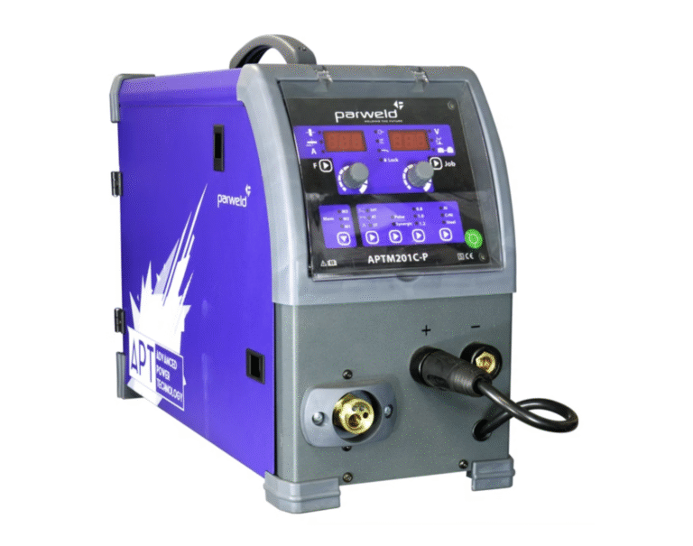 Parweld XTM201i este un aparat de sudură multiproces MIG/MMA/Lift TIG, cu o putere de 200A, ușor și compact, echipat cu control sinergic pentru setare rapidă, afișaj digital dublu și funcție 2T/4T trigger. Suportă sârme cu diametrul 0.8–1.0 mm pe role de 1 kg și 5 kg, permite sudarea materialelor de până la 4 mm grosime și oferă un duty cycle de 25% la 200A, 60% la 110A și 100% la 90A.